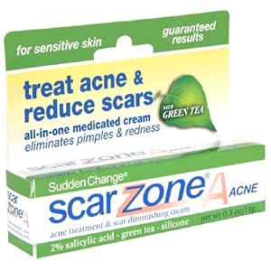 With green tea. Guaranteed results. Treat acne & reduce scars. All-in-one medicated cream, eliminates pimples & redness. Reduce visible signs of acne breakouts & scars. 2% Salicylic acid - green tea- silicone. Begin to quickly diminish acne pimples & redness, scarring brown spots with the help of Scar ZoneA Acne Cream. Clear, smooth skin is the goal. Regular use, twice-a-day, on the entire acne-prone area helps prevent future breakouts. Super Green Tea's antioxidant polyphenols EGCG help restore the damaged skin cell. Scar ZoneA works on existing blemishes-helps prevent new breakouts-helps diminish existing acne scars & marks. It can be worn under makeup or clothing because it will not stain.