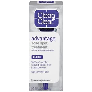 Clean & Clear Advantage Acne Spot Treatment is a gel with a unique breakthrough technology that dissolves surface oils on the skin allowing acne fighting medication to penetrate into pores and clear pimples fast, without over-drying your skin. This breakthrough formula starts to work on contact to quickly reduce the size and redness of pimples. In fact, 100% of people in a clinical study showed improvements as early as day one!