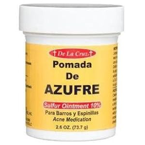 - De La Cruz Pomada de azufre sulfur ointment is used for treatment of acne, this ointment penetrates the pores, dries and clears pimples and blackheads. Helps to keep new pimples and blackheads from forming. Does not contain preservatives, or artificial colors or fragrances.