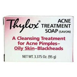 - Thylox Acne Treatment Soap acts four ways to improve blemished skin:1. Softens the hard shell of acne blemishes (keratolytic action). 2. Helps dissolve and remove blackheads. 3. Washes away excess oils which may cause blackheads. 4. Freshens skin by its thorough cleansing action.